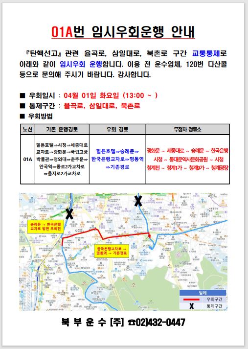 기존 운행 경로 : 사직단 → 조계사 → KT광화문지사 → 경복궁역1번출구